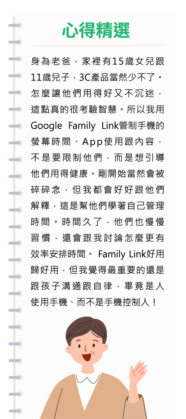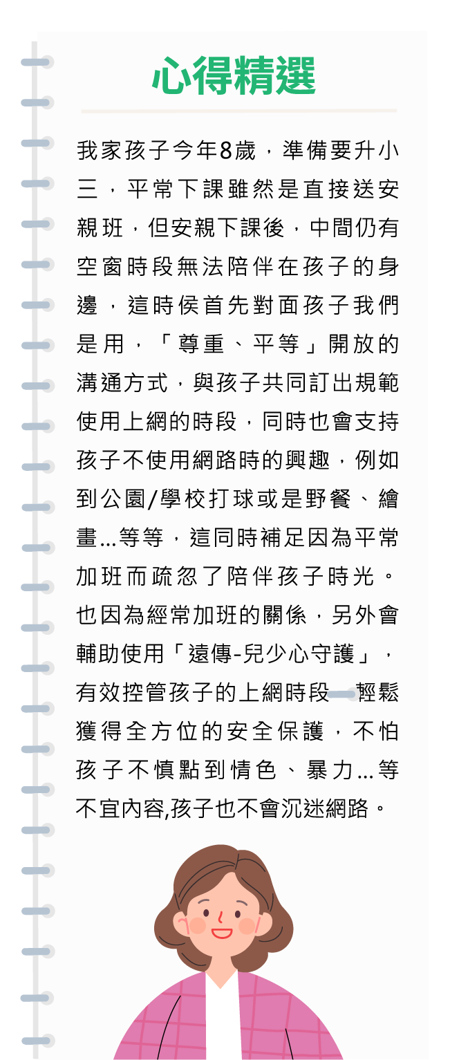 *以下提供目前網路上討論度較熱烈之守護孩童手機使用方法(不以此方法為限)家長可分享各自管理守護方法如